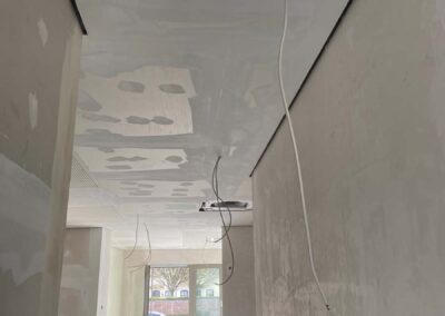 Anschließend erstellten wir Trockenbauwände mit Schattenfugen, um eine moderne Optik zu schaffen. Abgerundet wurden die Arbeiten durch sorgfältiges Verspachteln und Schleifen der Oberflächen.