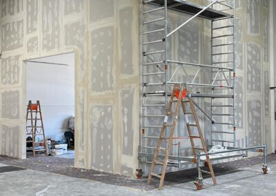Zusätzlich wurden innerhalb der Lagerhalle Büroräume gebaut. Diese Arbeiten umfassten umfassende Trockenbauarbeiten, die Isolierung der Wände, das Verputzen sowie den Einbau von Fenstern und Türen. Durch diese Maßnahmen wurde ein komfortabler und funktionaler Arbeitsbereich geschaffen, der den Anforderungen eines modernen Büroumfelds entspricht.
